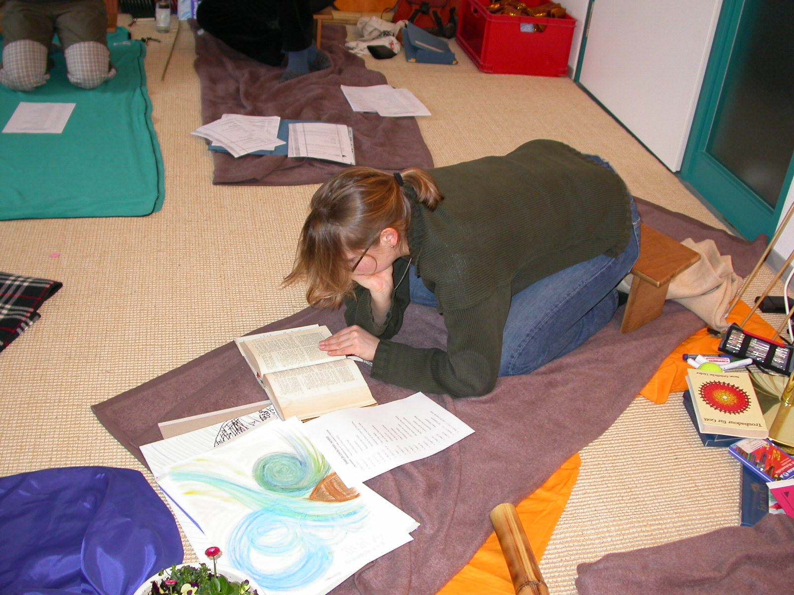 Unter dem Motto „Damit die Quelle wieder sprudelt“ verbrachten neun Lehrerinnen und Lehrer am 4. und 5. März 2005 mit Helga Kiesel und Ulrich Geißler eineinhalb Tage im Kilianeum. Dabei stand zunächst viel Zeit für Entspannung, Meditation, Malen und Körperübungen zu Verfügung. Im zweiten Teil ging es auf Entdeckungsreise durch den Sinnesparcours des Kilianeums. Darauf folgte die Suche nach der jeweiligen derzeitigen Lieblingsstelle in der Bibel und die Umsetzung in Bibliodrama-Standbildern. Mit einem Gottesdienst endeten die kreativen und besinnlichen Tage, die dabei halfen, dass spirituelle Kraftquellen wieder etwas mehr sprudeln konnten.