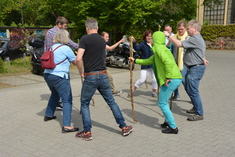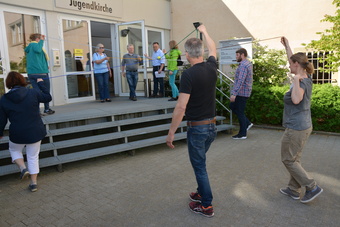 Andere Workshops hielten die „Sorge um das eigene Haus“ und die Stärkung der eigenen Ressourcen im Blick, zum Beispiel durch die Kunst, gute Gespräche zu führen und gewaltfrei zu kommunizieren, durch die kreative Arbeit an der eigenen Person oder durch Musik, Entspannungsübungen und Kontemplation. Als spirituellen Abschluss des Tages sang die Lehrerin und Liedermacherin Eva Maria Klöhr ein selbst getextetes und komponiertes Friedenslied.