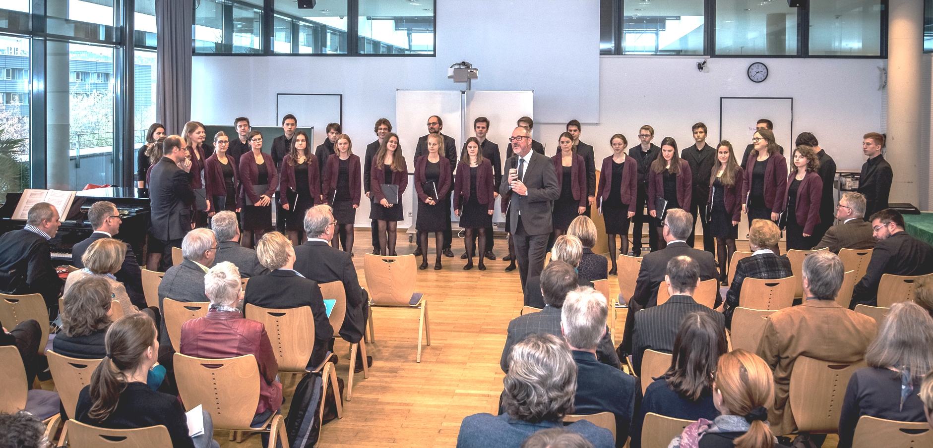 Die modernen lebensfrohen Lieder des Jugendkammerchors Koblenz unter der Leitung von Manfred Faig gaben der Jubiläumsfeier, zu der zahlreiche Vertreter aus Kirche, Schulen und staatlichen Institutionen gekommen waren, eine festliche Umrahmung.