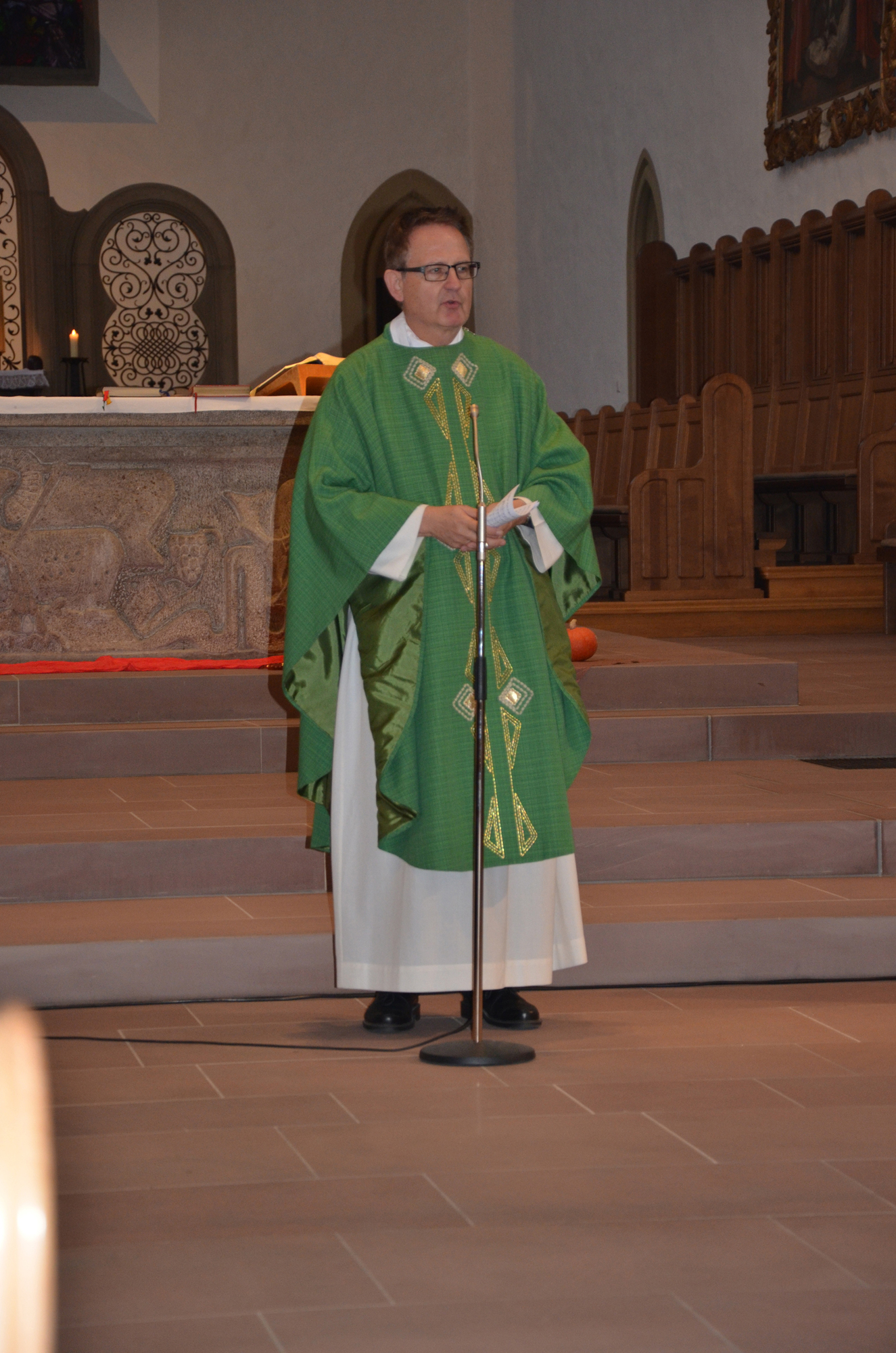 Die Eucharistiefeier in der Franziskanerkirche wurde von Domdekan Prälat Günter Putz geleitet und war von den Teilnehmern unter dem Motto „Ein Stück von deinem Weg mit uns“ vorbereitet und gestaltet. Die Band L.o.m.B. aus Winterhausen übernahm die musikalische Begleitung. In seiner Predigt ermutigte Domdekan Putz die Religionslehrer und Religionslehrerinnen, sich weiterhin in Bewegung bringen zu lassen und mit Gottes Begleitung auf dem Weg der Pilgerschaft zu bleiben. „Ein Pilger braucht nicht viel: ein gutes Herz, ein gutes Wort, ein gutes Brot als Stärkung und etwas zu trinken. Das genügt für den Weg“, so Putz. Im Lebensraum Schule kann erfahren werden, dass niemand alleine gehen muss.