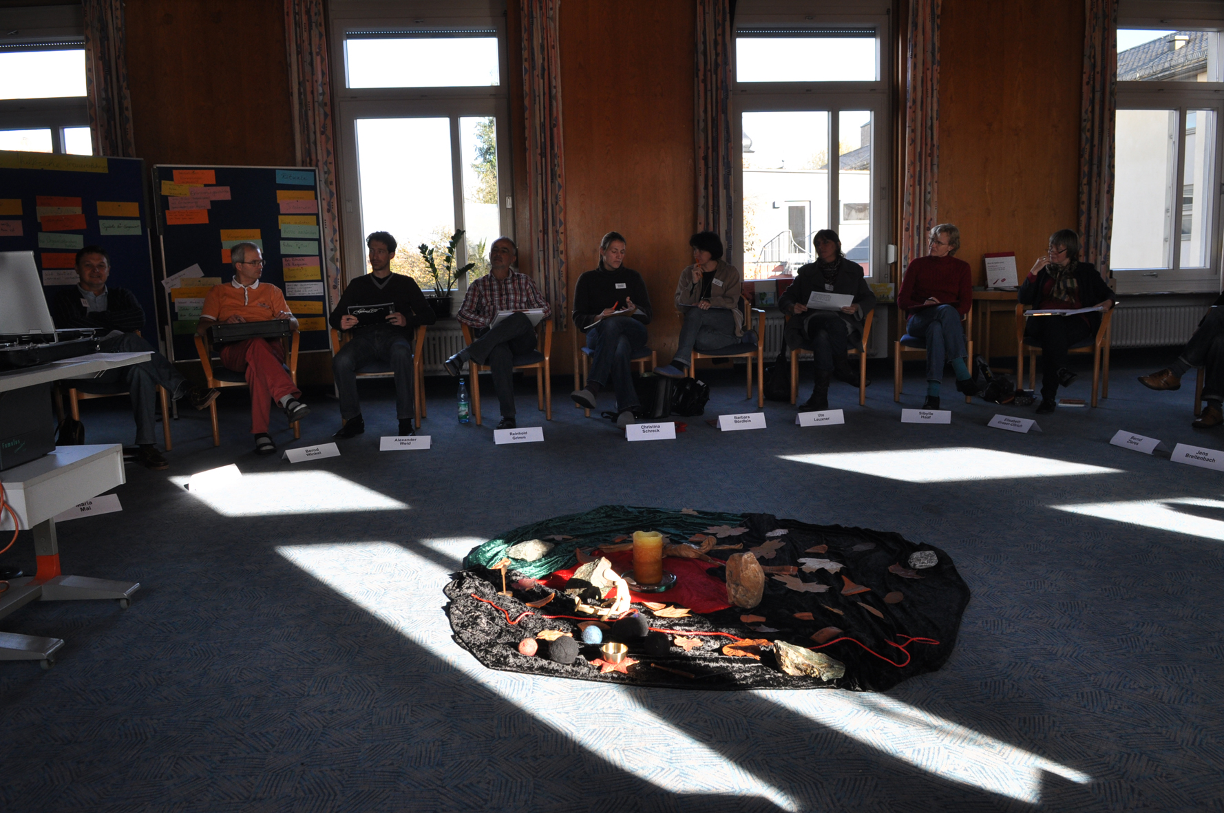 Um auf den „Umgang mit Tod und Trauer in der eigenen Schule“ besser vorbereitet zu sein, nahmen 27 unterfränkische Religionslehrer und -lehrerinnen aller Schularten an einer zweieinhalbtägigen Fortbildung in Münsterschwarzach teil. Bei dieser zum 6. Mal angebotenen Veranstaltung des Referates für Schulpastoral geht es z.B. um die Reflexion eigener Trauererfahrungen, das Kennenlernen verschiedener Trauertheorien, um das Besondere bei der Trauer von Kindern und Jugendlichen, um Psychotraumatologie und Psychohygiene, um die Kreise der Betroffenheit oder Rituale. Die Zusammenarbeit mit Mitarbeitern der „Krisenseelsorge im Schulbereich“ (KiS) und des „Kriseninterventions- und -bewältigungsteam bayerischer Schulpsychologen und -psychologinnen“ (KIBBS) bewährt sich dabei sehr gut.