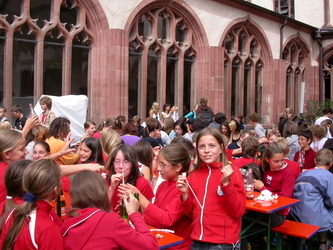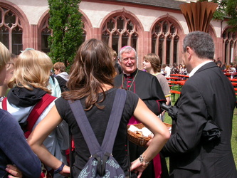 Markus Binzenhöfer, der am Egbert-Gymnasium Religion und Deutsch unterrichtet, hat die Messe eigens für diesen Tag komponiert. „Da sieht man mal, wie modern Latein sein kann“, meint Bischof Hofmann am Ende des Gottesdienstes, den er unter anderen mit Schulreferent Domkapitular Monsignore Günter Putz zelebriert. Die Gemeinde gibt ihm recht. Minutenlanger tosender Applaus belohnt Komponisten, Chorleiter, Sänger und Musikanten für ihren außerordentlichen Auftritt.