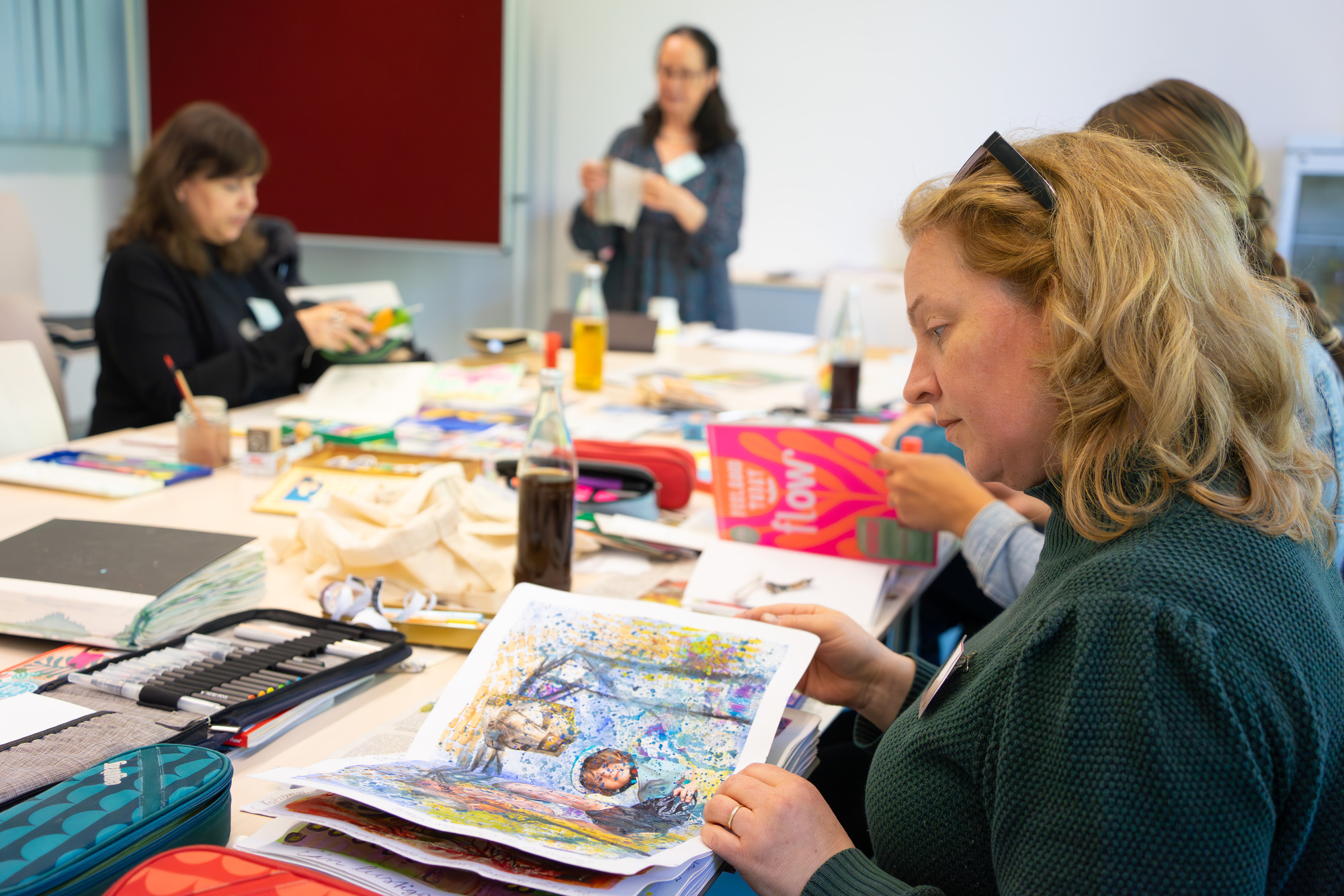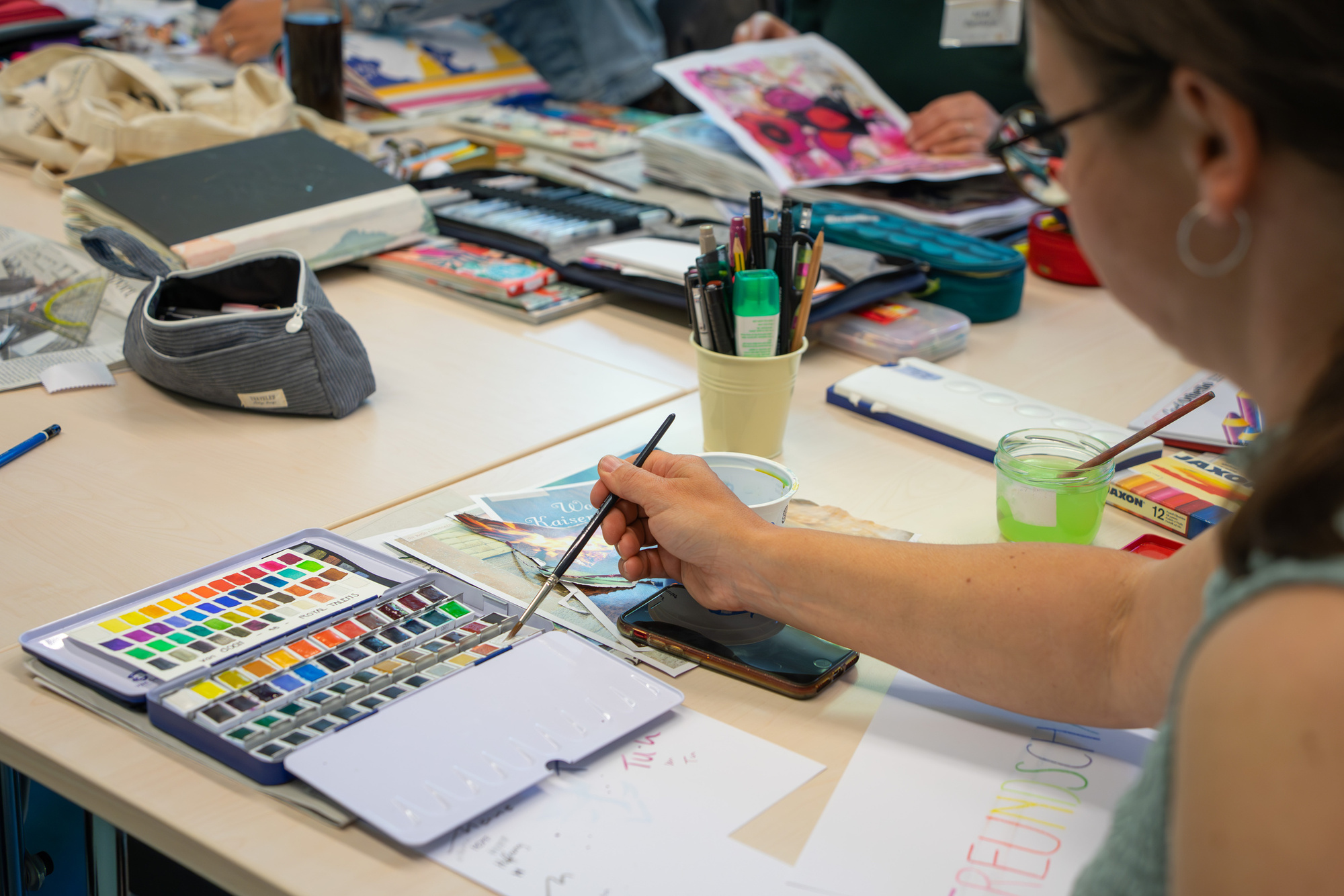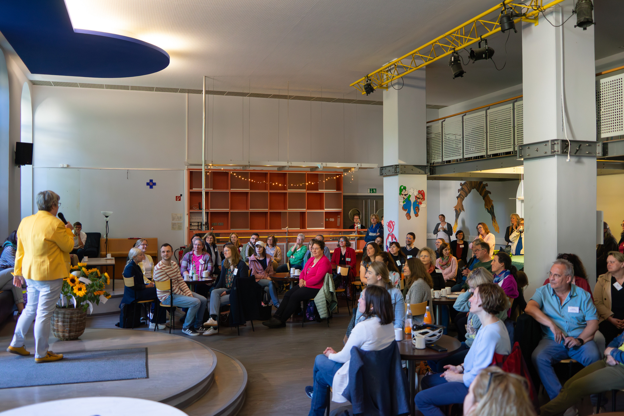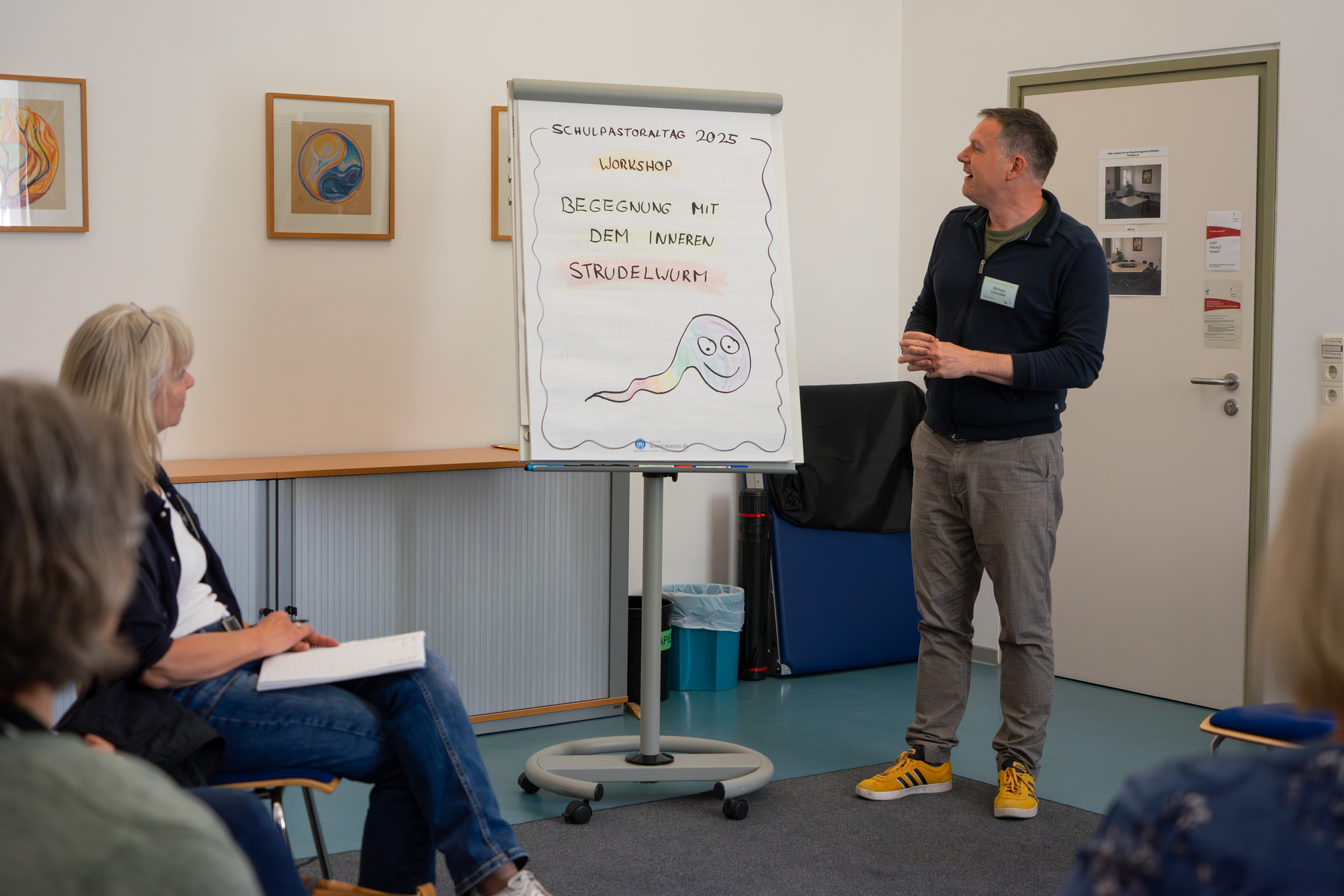 „Inspirieren, stärken und neue Perspektiven eröffnen – inmitten unseres Schulalltags“, das war das erklärte Anliegen des Schulpastoral-Tags 2025. 100 Teilnehmende – darunter Lehrkräfte aller Schularten, Jugendreferent*innen, Pastoral- und Gemeindereferent*innen, Sozialpädagog*innen und Erzieher*innen – waren der Einladung des Referats Schulpastoral und der Fachstelle Jugendarbeit und Schule der Kirchlichen Jugendarbeit gefolgt. Für den Samstag im Würzburger Kilianeum hatte das Team aus Helga Kiesel, Thorsten Kneuer und Florian Oberle (Schulpastoral) sowie Sonja Bauer, Annika Lipp und Matthias Muckelbauer (Fachstelle Jugendarbeit und Schule der kja) einen bunten Blumenstrauß aus 24 Workshops zusammengetragen.