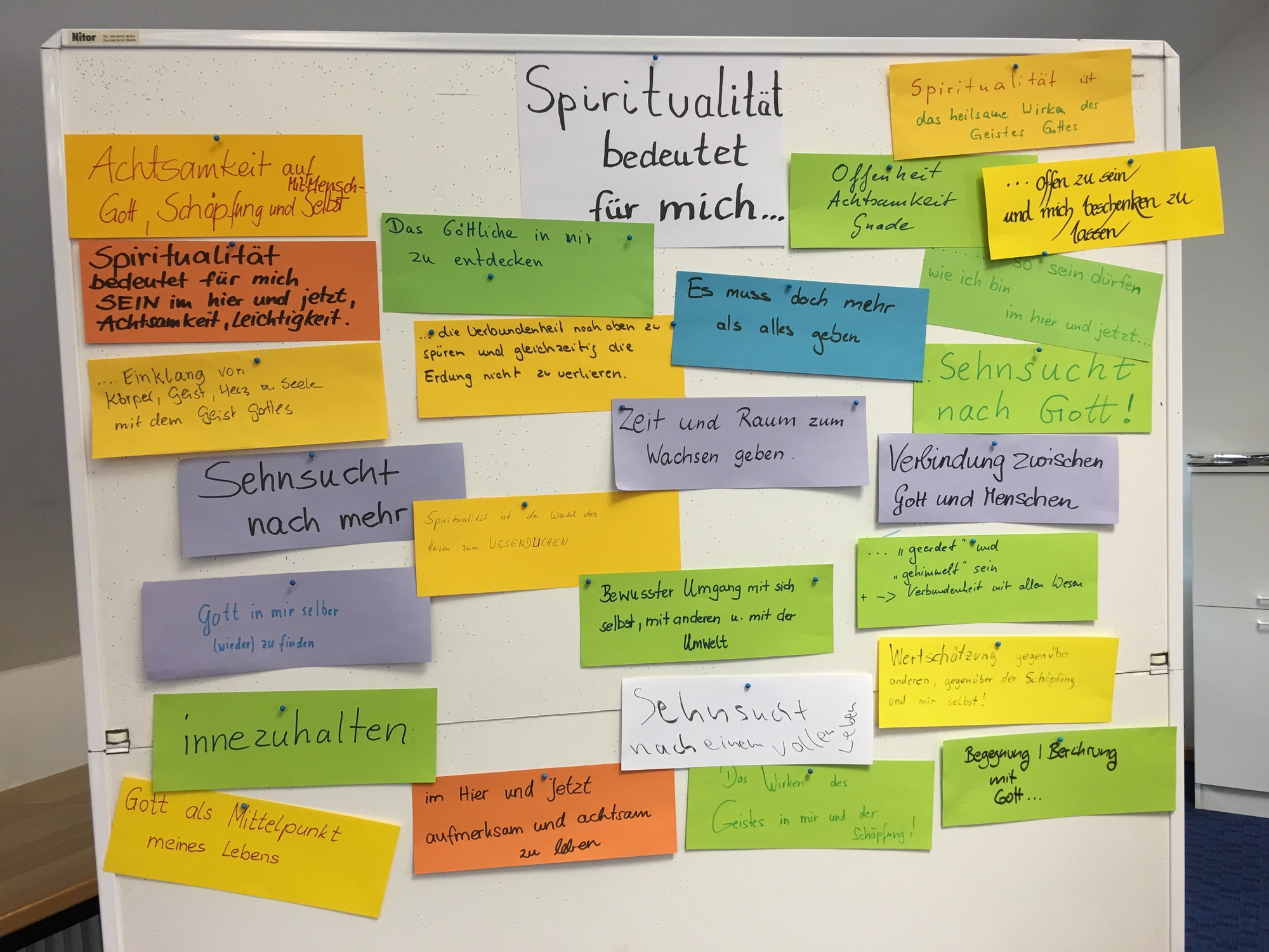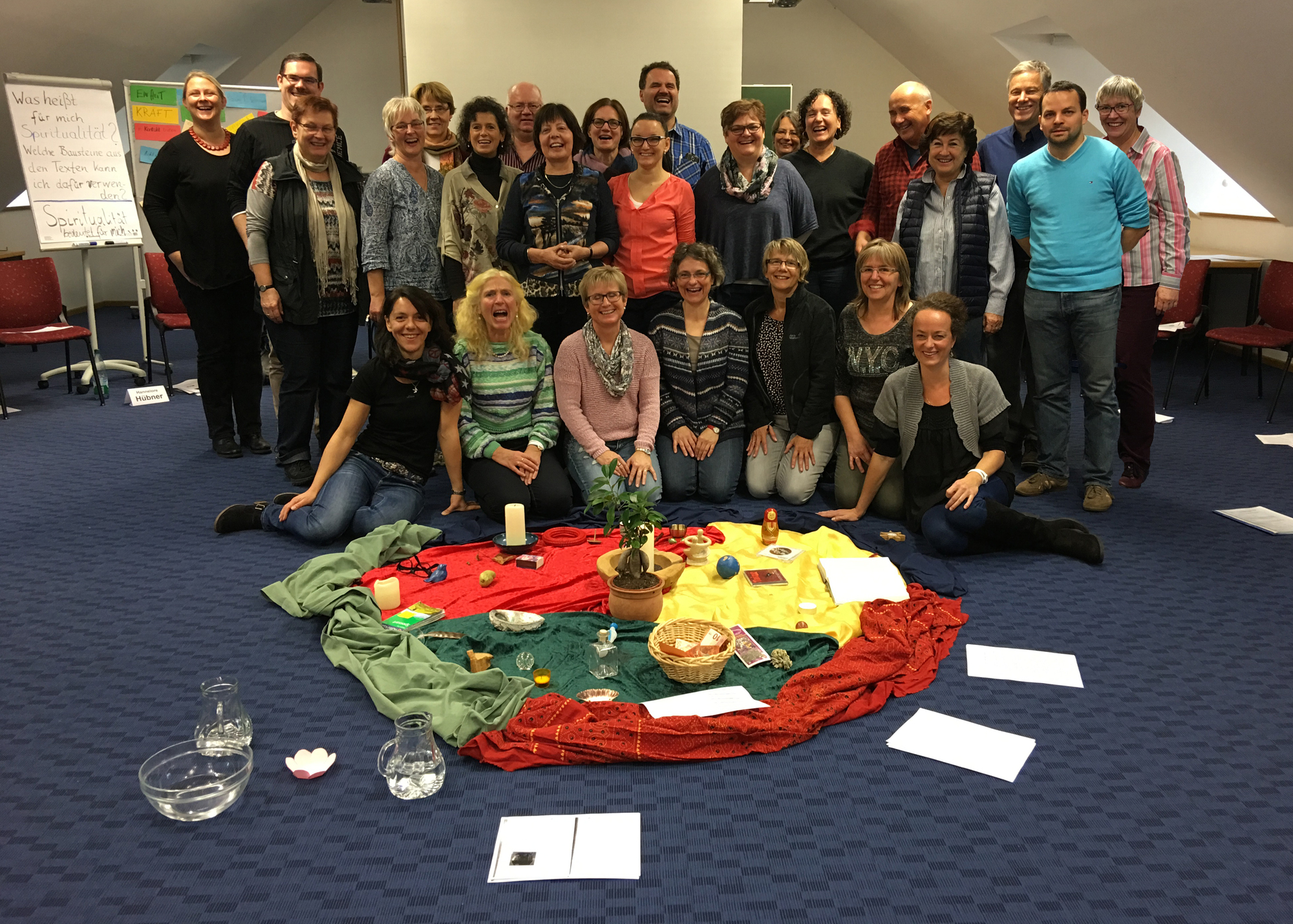 Inhaltlich ging es darum, die eigene Spiritualität zu reflektieren und Anregungen aufzunehmen, wie Gottesdienste und spirituelle Angebote in der Schule gut gestaltet werden. Neben Impulsen durch die Referenten bereiteten die Teilnehmer/innen in Kleingruppen auch selbst ein spirituelles Angebot vor. Danach wurde es in der Gesamtgruppe durchgeführt und besprochen.