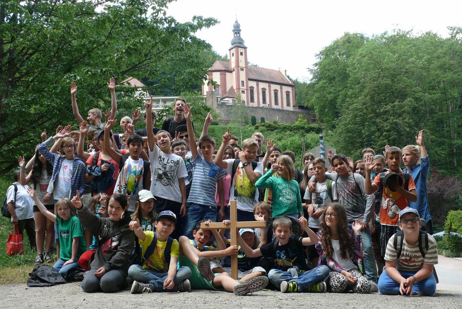 Über die Karlsburg nach Rohrbach und dann über die Valentinuskapelle zog sich der Wallfahrtsweg, bevor es dann über die Felder weiter zur Dorfkirche der Erlenbacher Höfe ging und von da durch den Wald ins Buchental. Als Lohn für die Anstrengung des 18 Kilometer und knapp 5 Stunden langen Weges gab es dann für alle Leberkäsbrötchen und Apfelsaftschorle mit Unterstützung des Elternbeirates an der Klosterkirche.