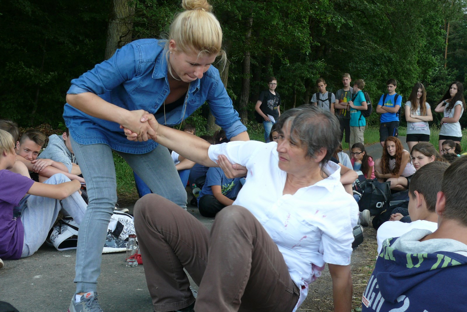Inhaltlich ging es um das biblische Gleichnis vom barmherzigen Samariter. So vermittelte Marianne Oßwald im szenischen Spiel tiefe Eindrücke in das Erleben von Gewalt einerseits, aber auch die nötige Unterstützung für hilfsbedürftige Menschen. Mit gemeinsamen Liedern und Gebeten wurden die Schüler an den insgesamt vier Stationen und einer Abschlussandacht in der Wallfahrtskirche spirituell mit eingebunden.