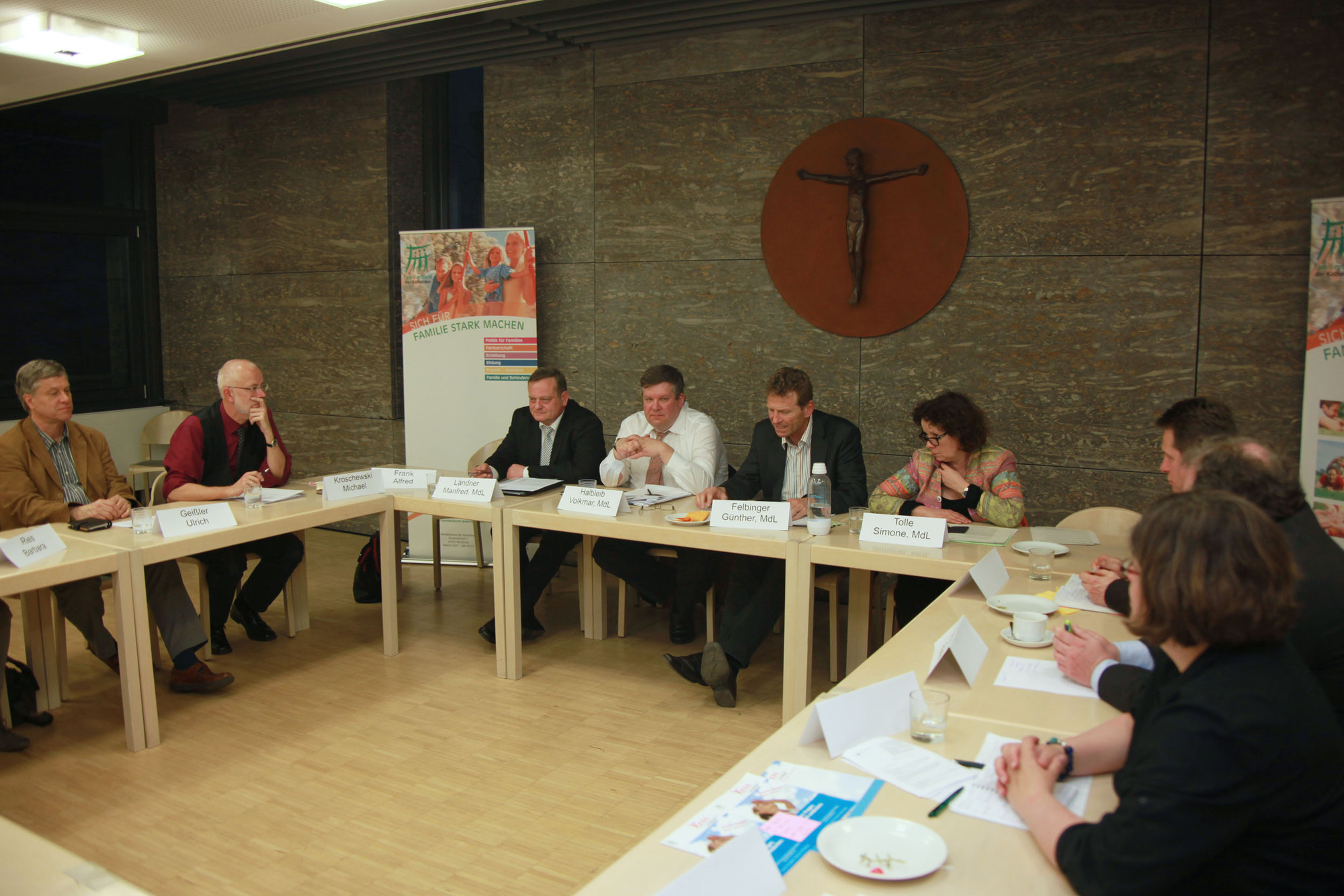 Vertreten waren außerdem Peter Stegmann, unterfränkischer Bezirksvorsitzender des Bayerischen Philologenverbands, Rainer Breunig von der Katholischen Erziehergemeinschaft in Bayern (KEG) und Barbara Ries von der Landes-Eltern-Vereinigung (LEV). FDK-Vorsitzender Michael Kroschewski forderte von den Abgeordneten mehr Mut, um das Schulsystem zu verbessern. Nach den Worten Kroschewskis ist kein anderes Thema im Gespräch mit Familien so frustbeladen wie das Thema Schule. Deshalb müssten gegebene Möglichkeiten für Verbesserungen genutzt werden: „Wir suchen in der Vielfalt von Stellschrauben die kleinen Stellschrauben, wo etwas verbessert werden kann."